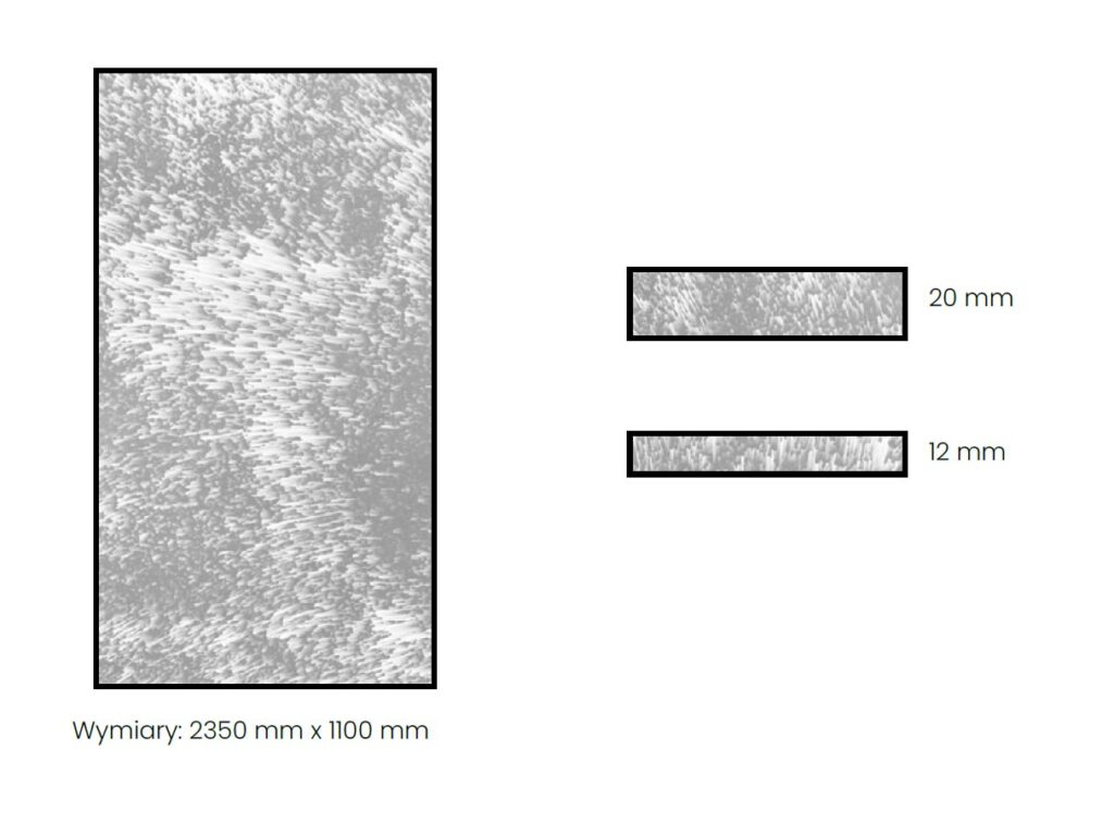 Produkujemy wielkoformatowe płyty o różnych kompozycjach kolorystycznych i wzorniczych. W ofercie posiadamy dwie grubości płyt: 12 mm oraz 20 mm.